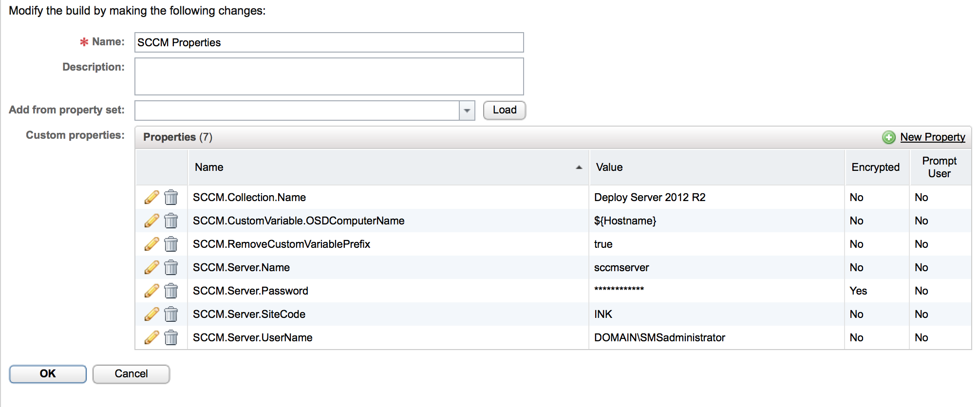 After selecting the existing SCCM build profile we simply set the values based on our environment. Note that if you want to allow users to alter settings at order time, simply set the property to “prompt user”.