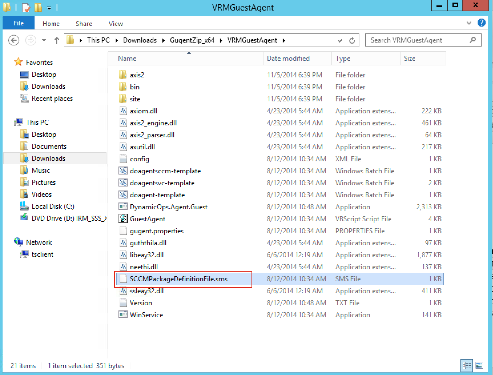 Unzip the vRA guest agent to a location on the SCCM server. Note the SCCMPackageDefinitionFile.sms file will serve as the definition file when we create the installation package.
