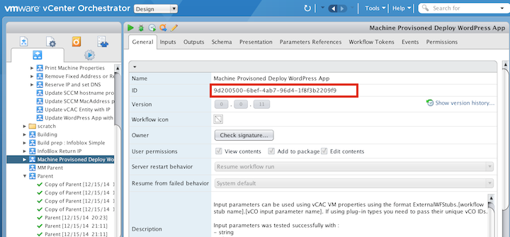 ExternalWFStubs.BuildingMachine: Sets the vRO workflow to be run when building the VM. In this case I am calling a vRO workflow that allocates an IP address from an IPAM system.