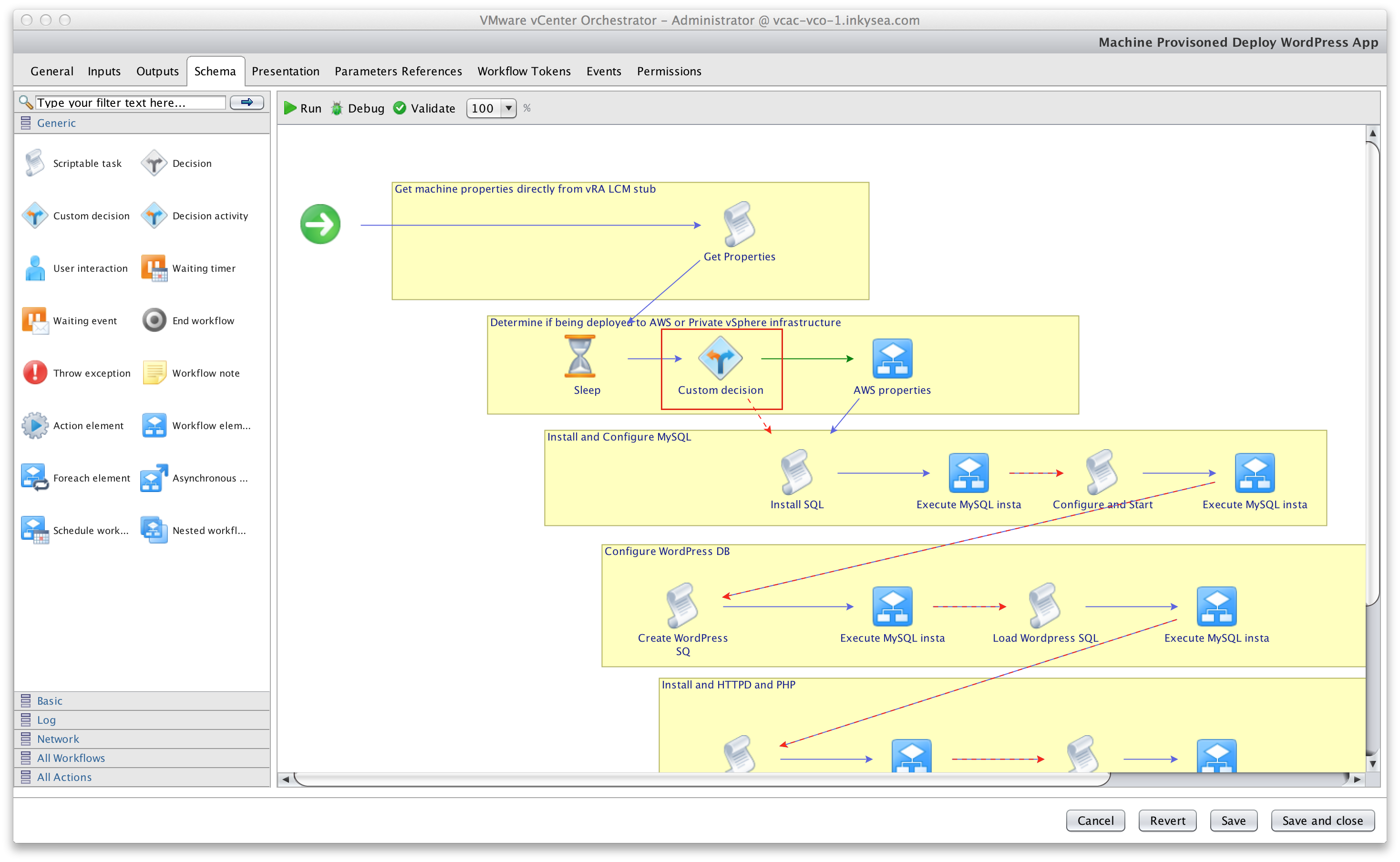 ExternalWFStubs.DisposingMachine: Sets the vRO workflow to be run when destroying the VM. In this case I am calling a vRO workflow that gives back the IP address requested from IPAM when building the VM.